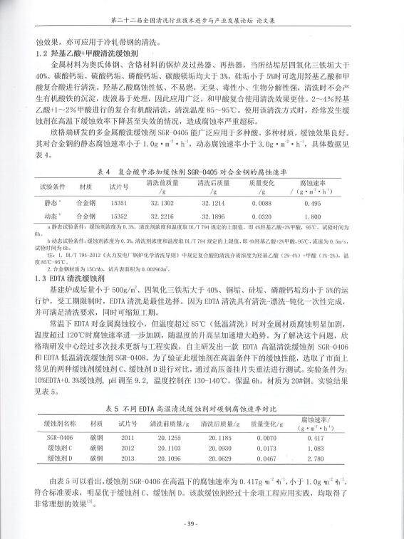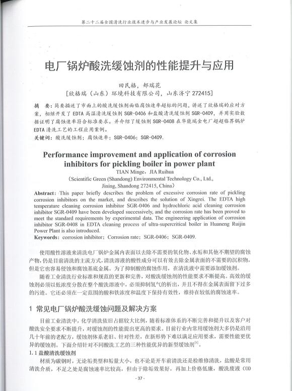 電廠鍋爐酸洗緩蝕劑的性能提升與應用