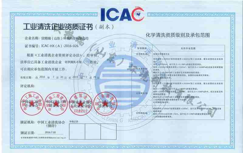 工業(yè)清洗化學(xué)清洗A資質(zhì)